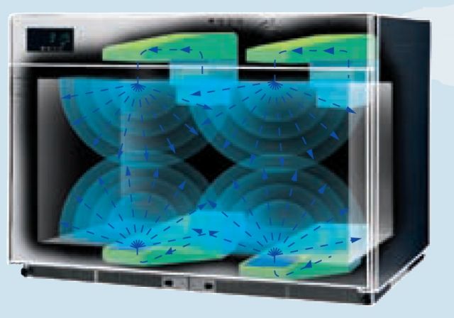 - Zwei-Etagenbetrieb - je 2 Magnetrons von oben und unten für gleichmässige Erhitzung