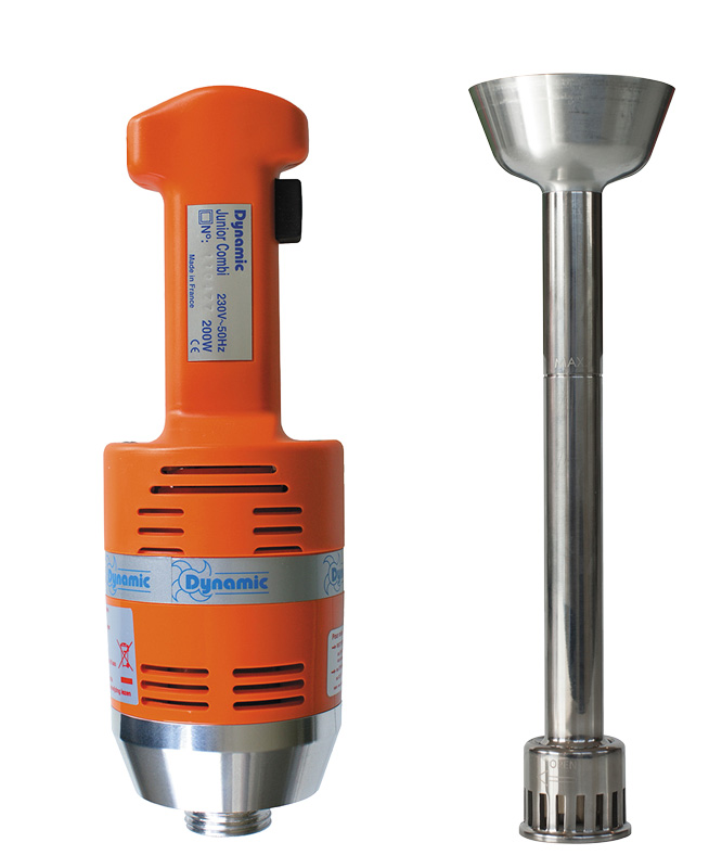 Mit dem abnehmbaren Turbostab von Dynamic produzieren Sie stabile und homogene Massen. Sie arbeiten schnell in der Anwendung und erzielen köstlich cremige Suppen. Selbst Lauchfasern oder Gefrorenes wird sehr schnell und fein püriert. Dressings werden schnell und stabil emulgiert. Die Masse wird von unten angezogen und mit dem Emulgierwerkzeug zerschnitten und zerkleinert. Dann mit hoher Geschwindigkeit durch die Zähne der Glocke ausgestoßen. Auch perfekt für passierte Kost im Seniorenbereich.