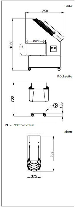 - Maximale Teigkapazität: 17 kg pro Zyklus (maximal 10,6 kg Mehl/Zyklus), bei 60 % Hydratation