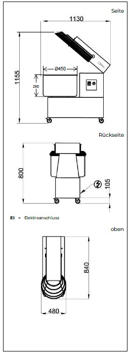 - Maximale Teigkapazität: 33 kg pro Zyklus (maximal 20,6 kg Mehl/Zyklus), bei 60 % Hydratation