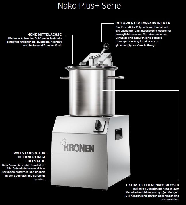 Kronen KC 32 Nako Kutter Plus+3 Liter inkl. Abstreifer mit 2 Geschwindigkeiten und Messer Mikroverzahnt