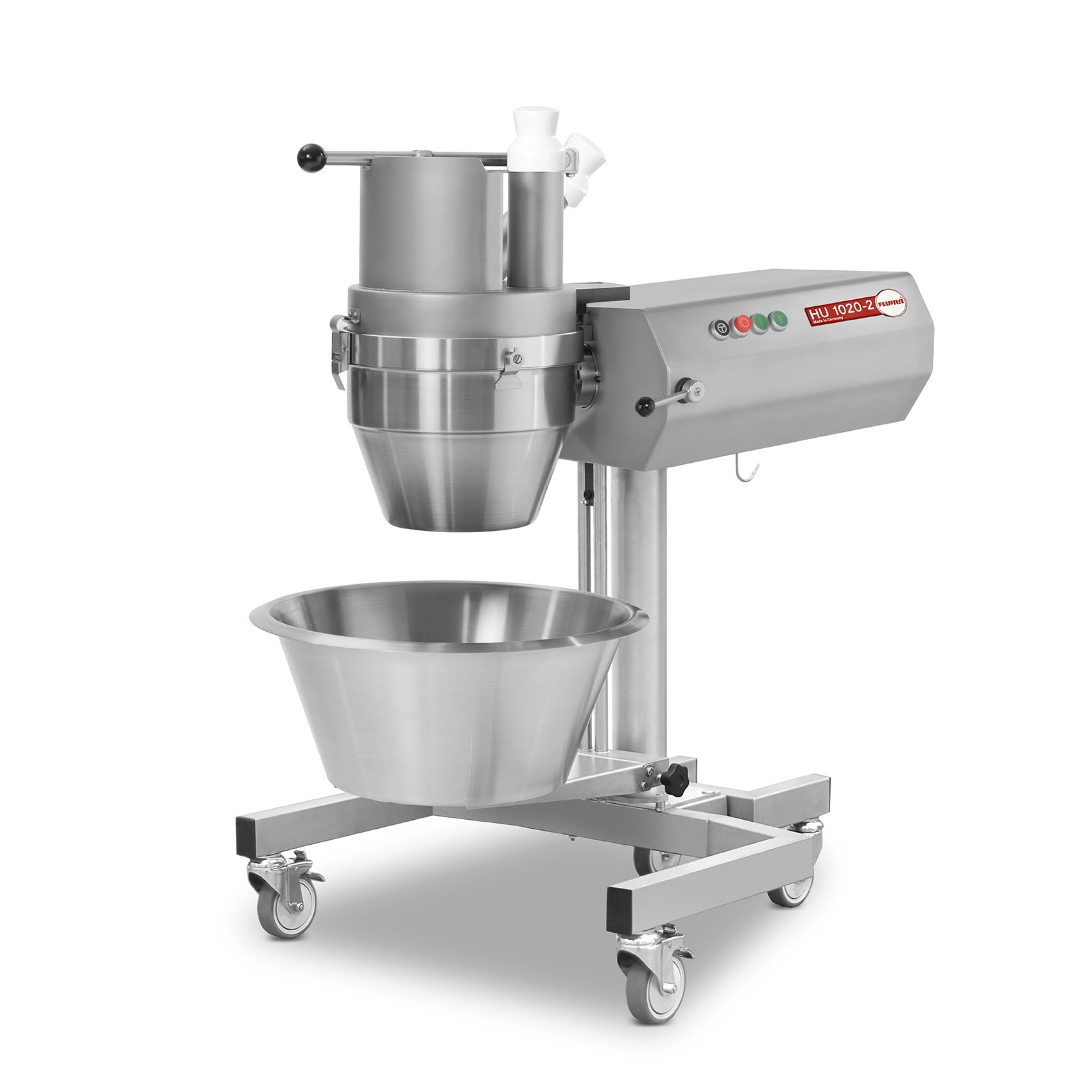 Die Hochleistungs-Universal-Großküchenmaschine HU 1020-2 ist eine moderne, universell einsetzbare Mehrzweckküchenmaschine für die Gemüse-, Obst- und Fleischverarbeitung. Die HU 1020-2 garantier eine hohe Durchsatzleistung gepaart mit einer sicherer Bedienung und mit besten Verarbeitungsergebnissen.