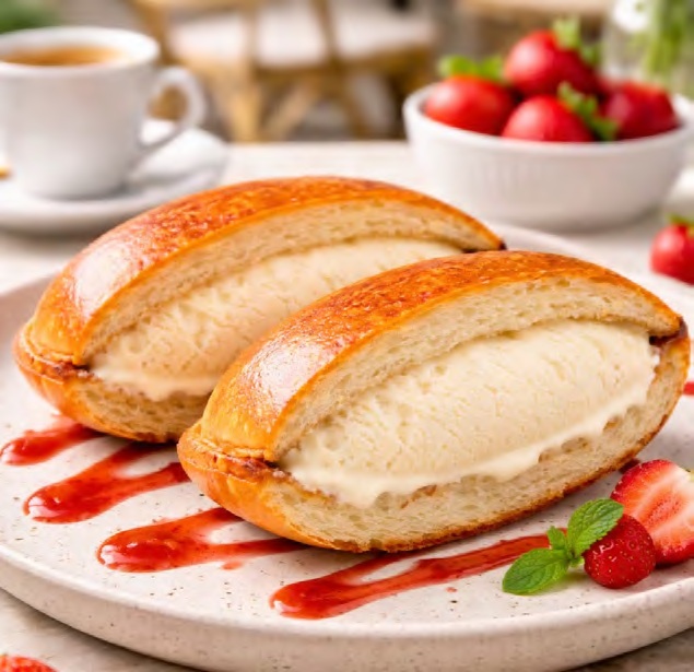 Fladenbrot oder klassische Toastscheiben bieten maximale Flexibilität und erlauben sowohl traditionelle als auch moderne Snack-Konzepte. Besonders gefragt ist das Ice Cream Sandwich (Croque glacé): außen goldbraun und warm gebacken, innen zart schmelzende Eiscreme: ein spannender Kontrast, der Aufmerksamkeit erzeugt. Der Disco Snack eignet sich ideal als To-go-Lösung für Streetfood, Events, Cafés oder die Systemgastronomie.