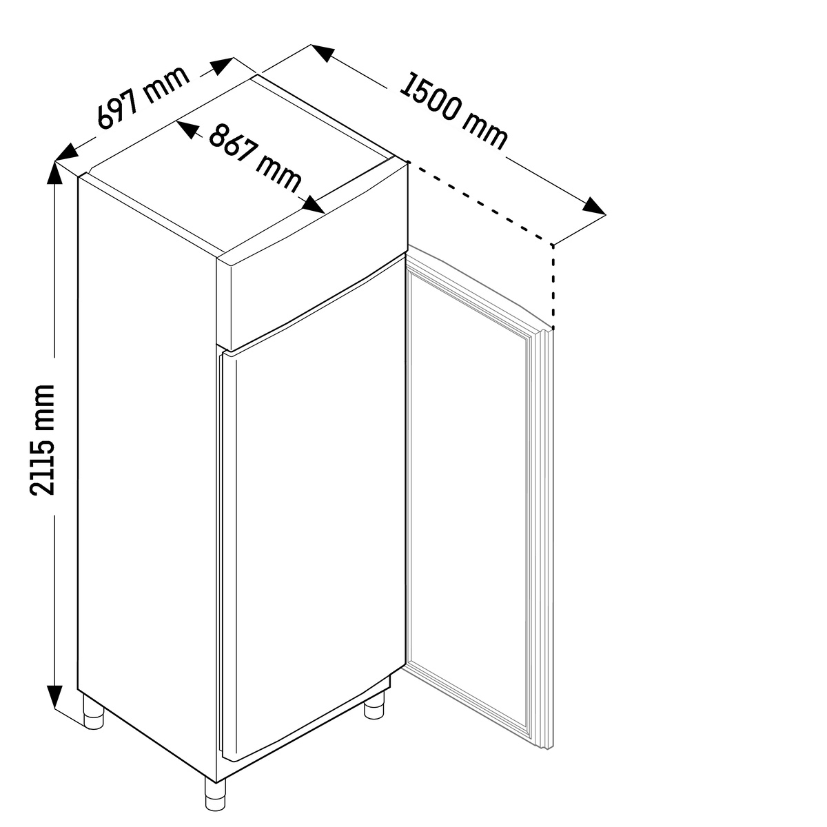 Abmessungen aussen: B 697 x T 867 x H 2115 mm