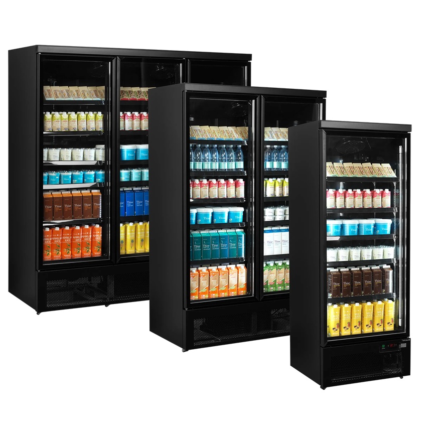 Der Atom Maxi-Kühlschrank bietet eine hervorragende Lagerkapazität und eignet sich ideal für die Präsentation von Lebensmitteln und Getränken in Supermärkten, Convenience-Stores, Feinkostläden, Metzgereien und Zoohandlungen an. Mit seiner schwarzen Innen- und Außenseite verleiht dieser Schrank jedem Geschäft ein stilvolles und modernes Aussehen. Er verfügt über selbstschließende Glastüren, verstellbare Fachböden und eine LED-Beleuchtung für eine optimale Produktpräsentation. Der Glastür-Kühlschrank arbeitet mit einem Umluftkühlsystem, ist somit ein energieeffizienter Glastürkühlschrank.