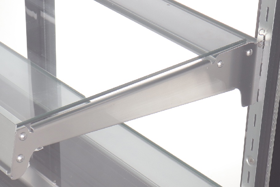 • 2 Glasetagen mit Edelstahl Auflagewinkel, höhenverstellbar: