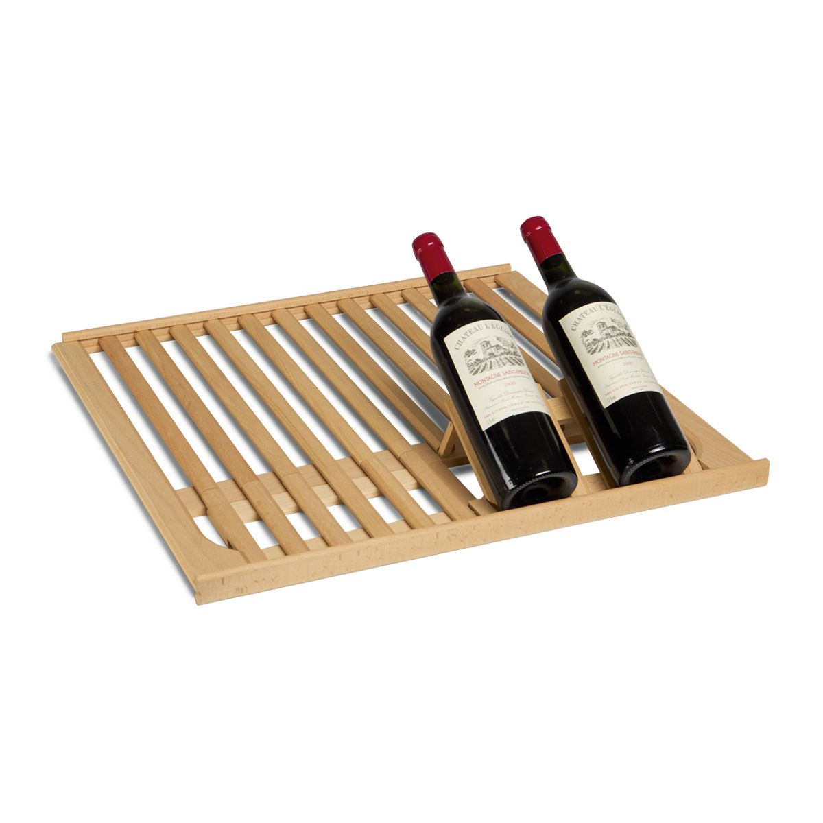 Auf dem Präsentationsboard aus Buchenholz können auch zwei offene Weinflaschen sicher gelagert und hochwertig präsentiert werden. Möglich macht das die im Board integrierte Klappfunktion.