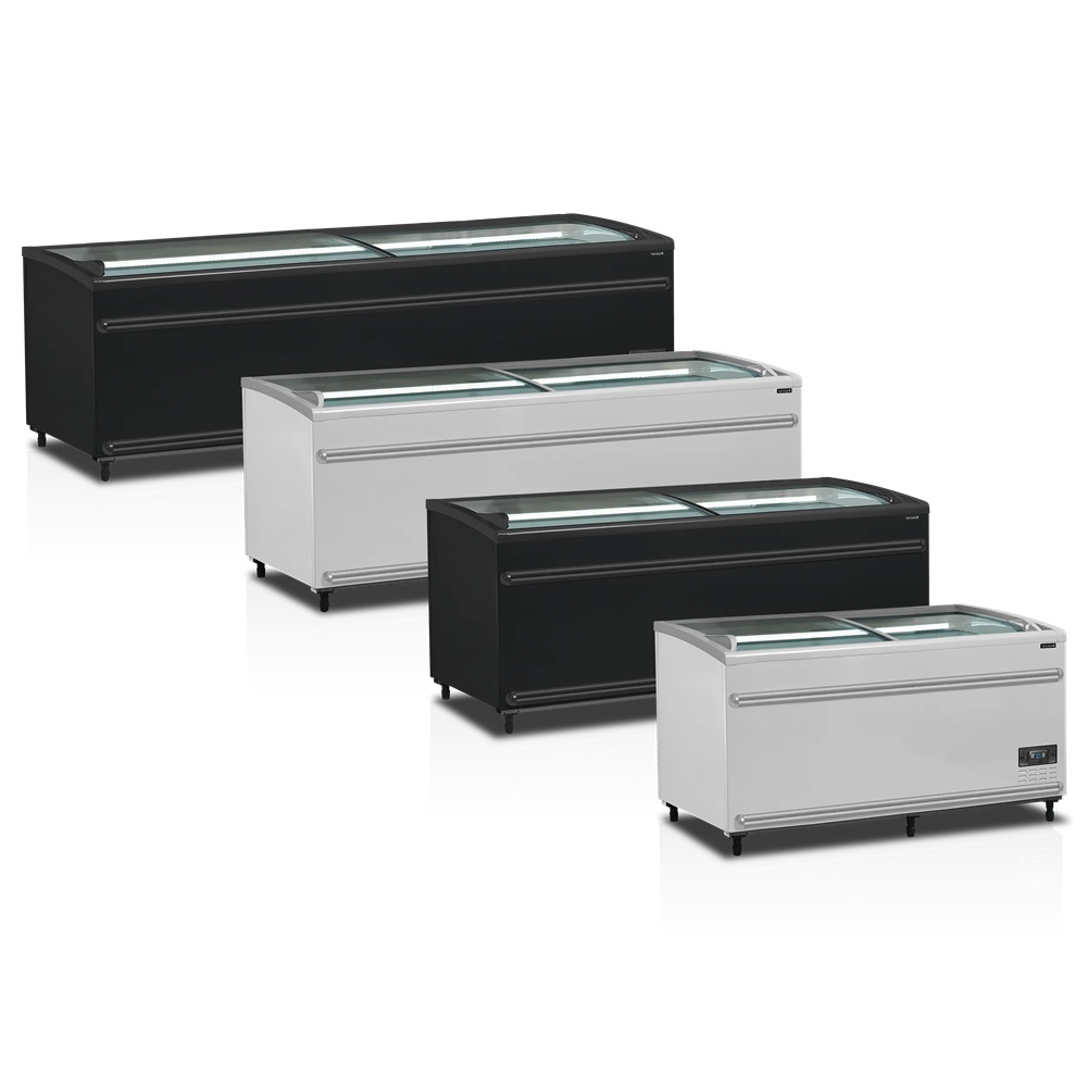 werden kann, um Energie zu sparen. Die Supermarkt-Kühl-/Gefriertruhe kann in Inseln mit einem Kopfgehäuse an jedem Ende oder unter einem MTF-Oberbaumodul angeordnet werden. Der über die Drehzahl geregelte Kompressor sorgt dafür, dass das Gerät die Temperatur nur bei Bedarf regelt. Damit wird das Gerät ca. 20 % energieeffizienter im Vergleich zum Vorgängermodell.