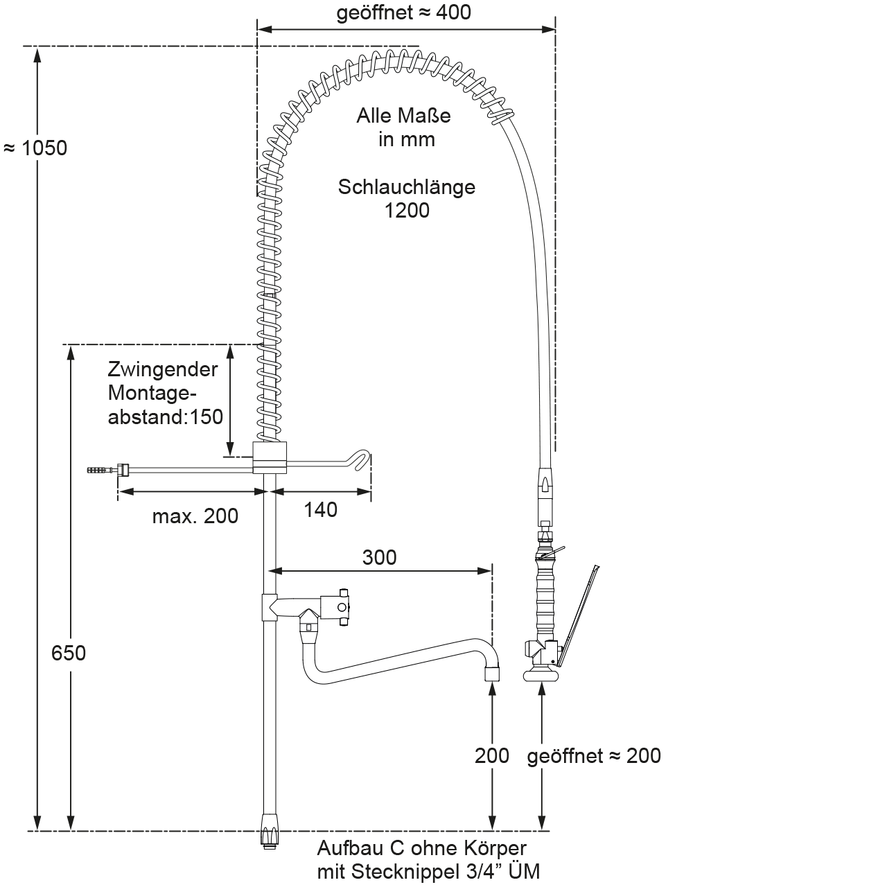 - Höhe bis Auslauf: 350 mm