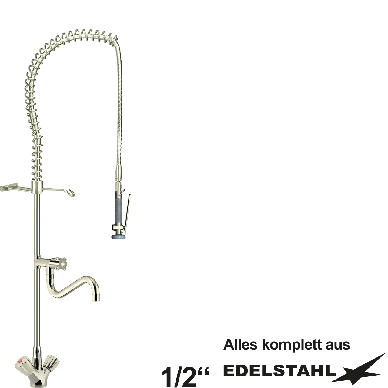 - Auslauf, Standrohr, Standrohrhalter, Brauseeinhängehaken, Federhalter, Tragfeder, Gelenkadapter komplett aus poliertem Edelstahl