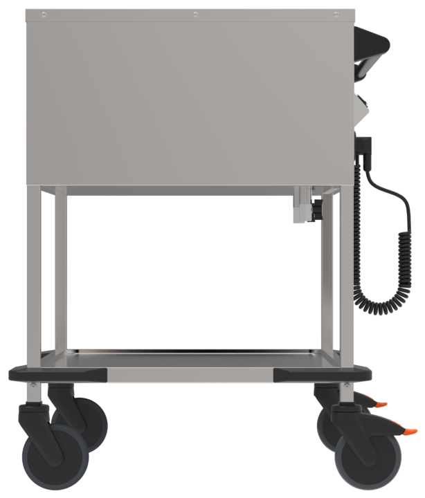 - Rostfreie Rollenausstattung gemäß DIN 18867, Teil 8, Raddurchmesser 125 mm, 2 Lenkrollen