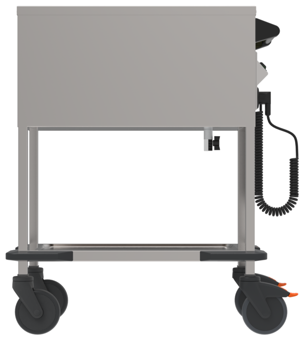 - Rostfreie Rollenausstattung gemäß DIN 18867, Teil 8, Raddurchmesser 125 mm, 2 Lenkrollen