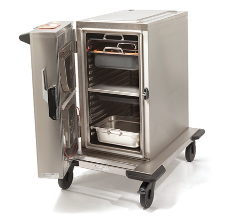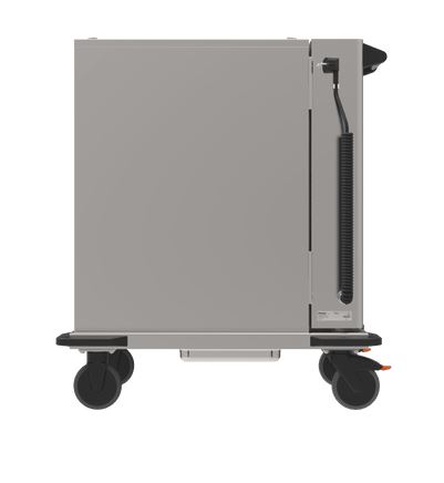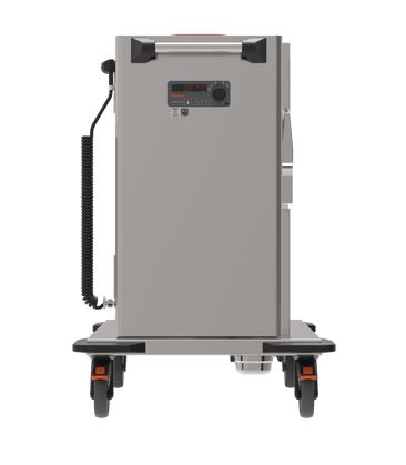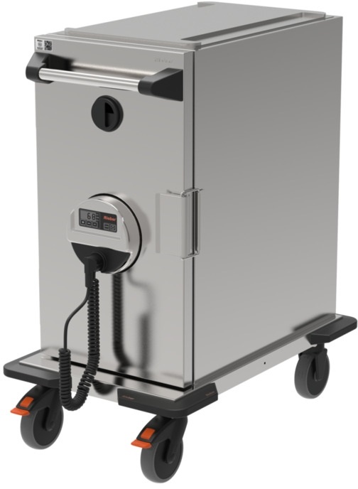Die spezielle Funktionstür verleiht dem fahrbaren Frontlader mit gleich zwei getrennt digital, steuerbaren Umluftheizungen vielfältige Funktionen und einzigartige Hybrideigenschaft – mit wählbaren Programmen für Kalt- und Warmhalten gleichzeitig oder separat, wie auch Regenerieren, Garen und Backen von Speisen im GN-System. Mit zusätzlich individuell einstellbarer Zeit, Befeuchtung und Sollwert für Kammer- oder Kerntemperatur.