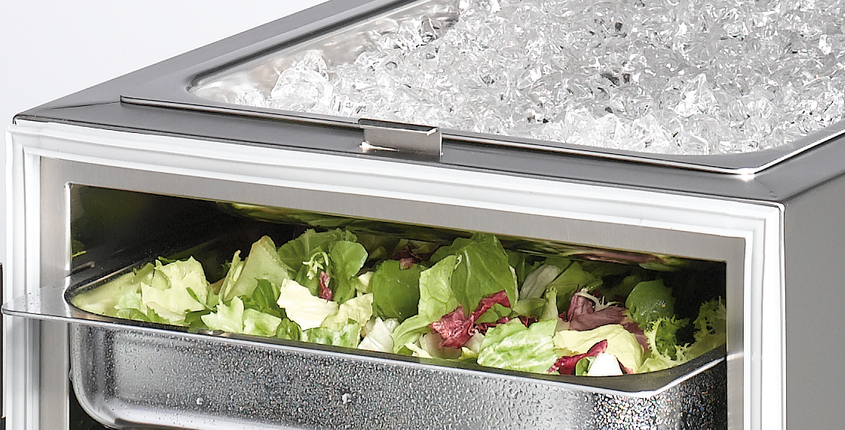 - Bestückungsbeispiel: 8 x GN 1/1 - 65 mm tief oder 4 x GN 1/1 - 100 mm tief und 1 x GN 1/1 - 150 mm tief